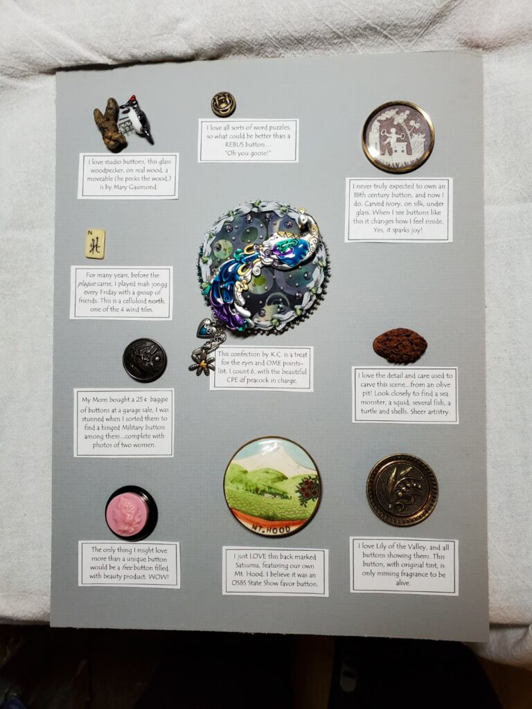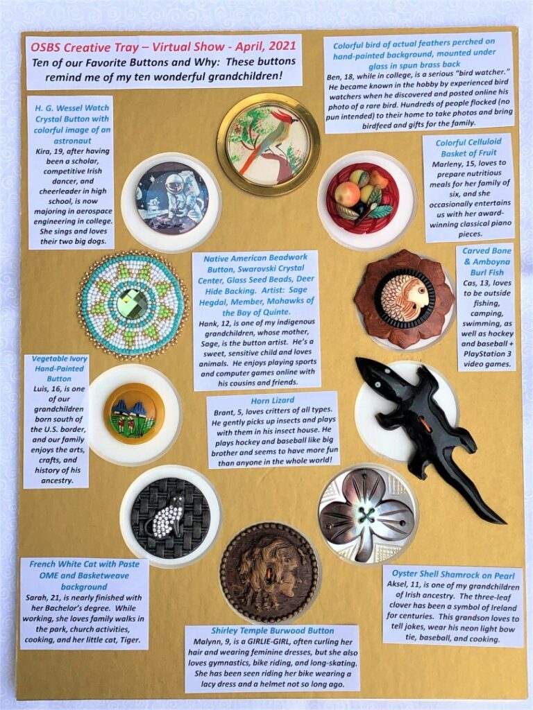 In 2021, OSBS had a virtual Button Show and special competition was conducted by photo submission and online judging. Click on one of the trays to view all.